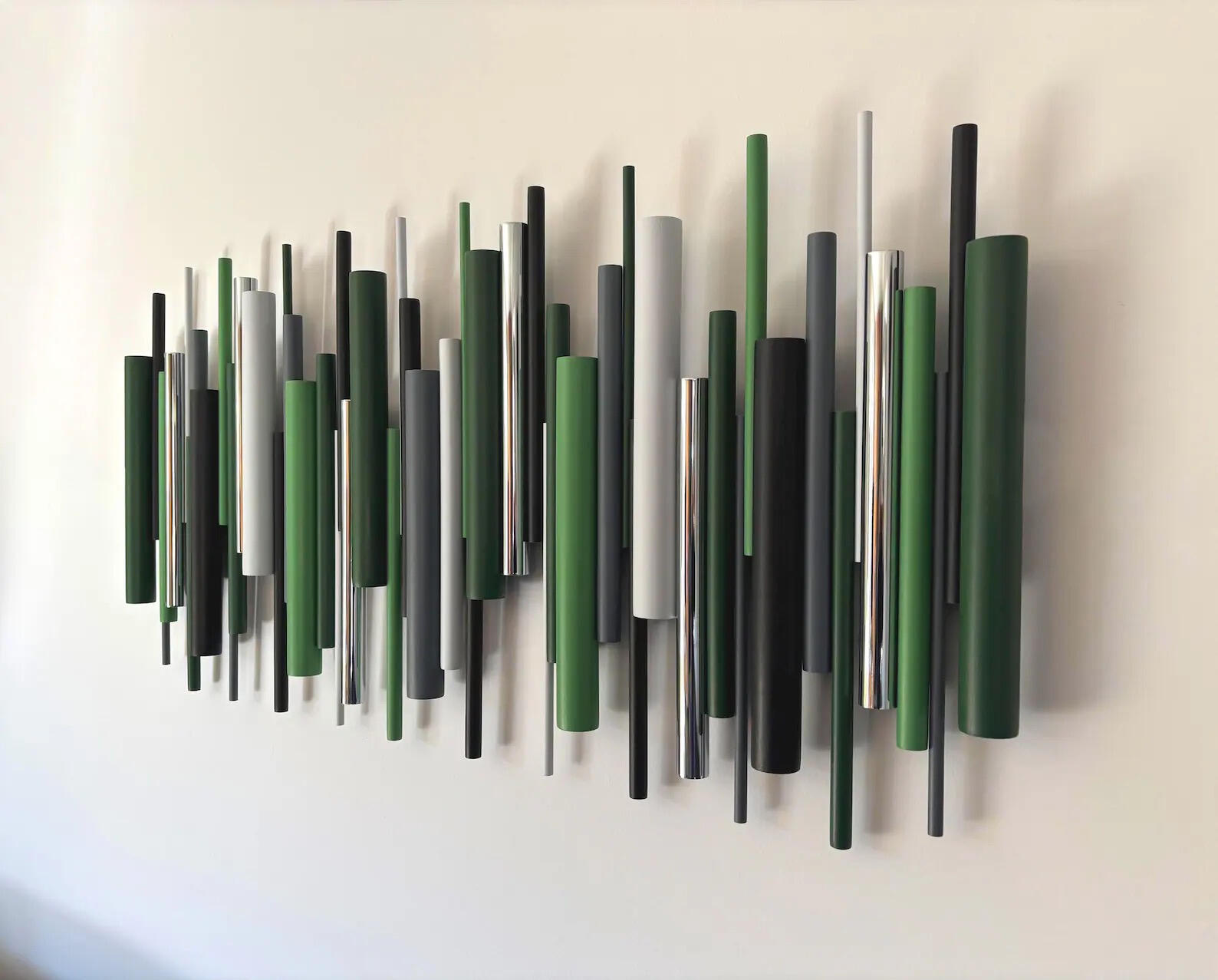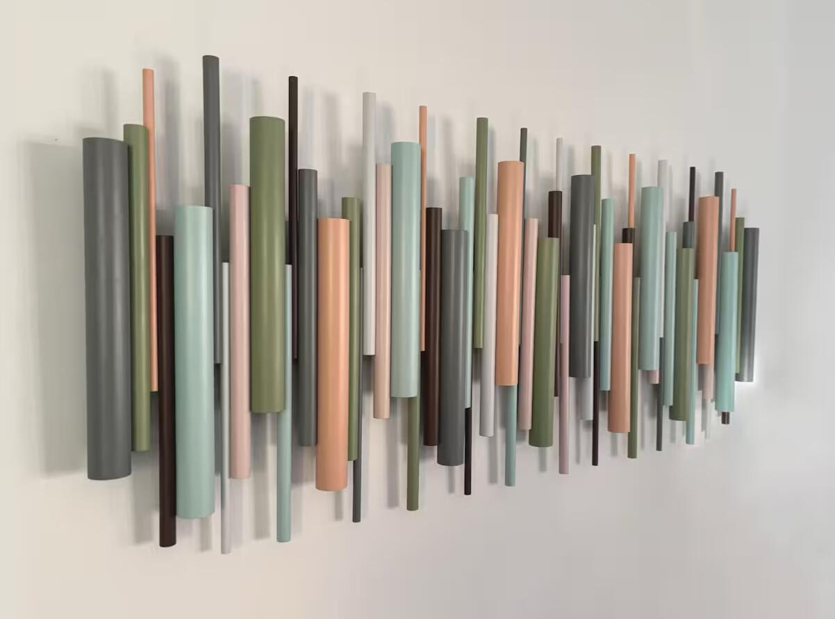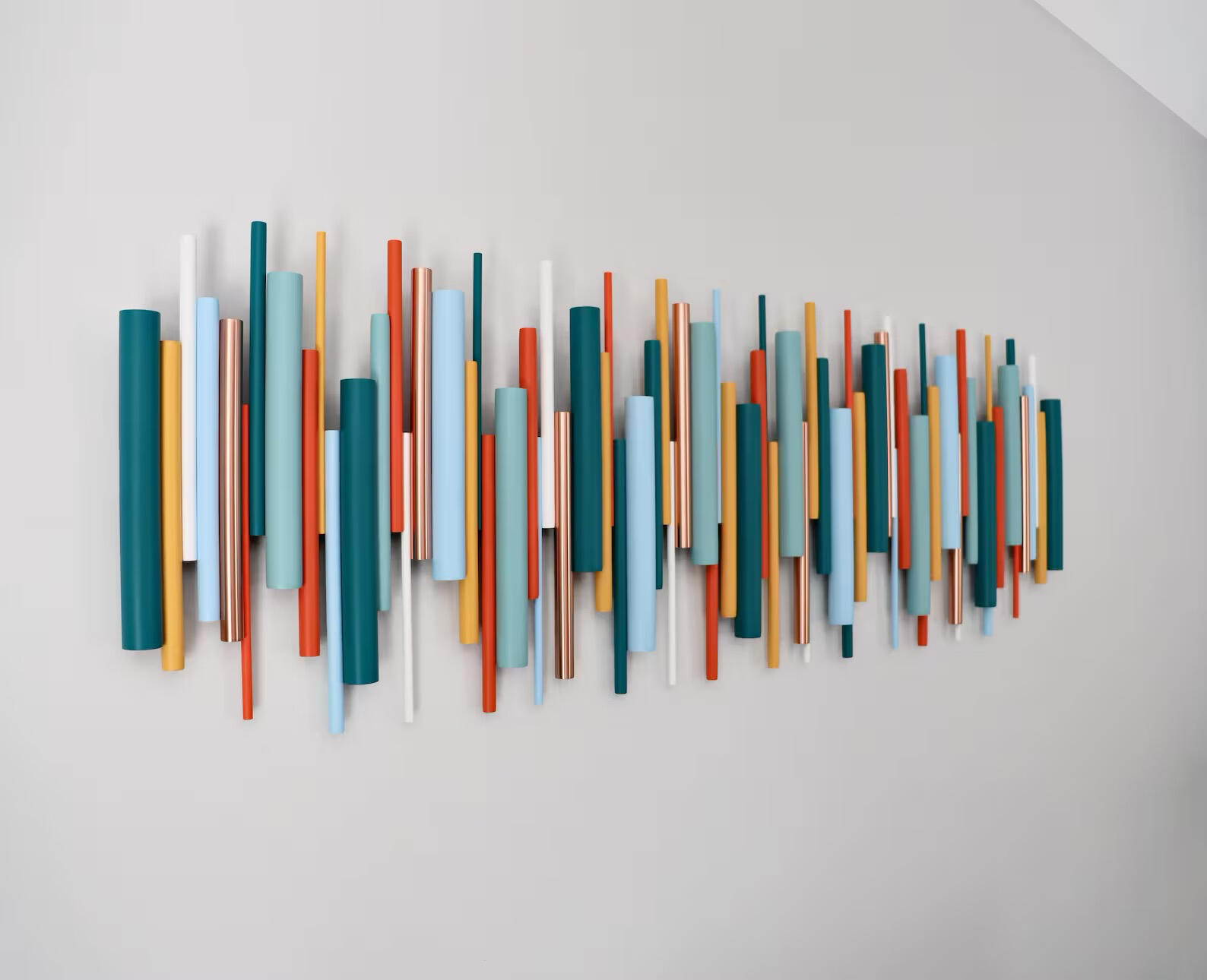Handcrafted wooden wall art with optional metal accents including chrome, copper, and brushed nickel.