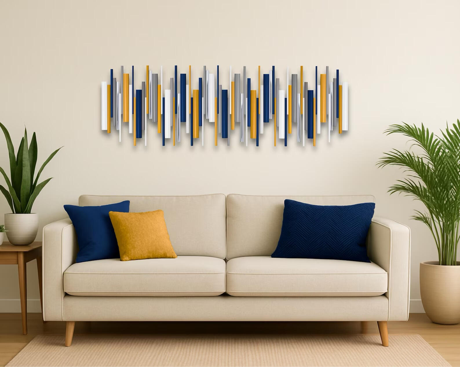 Modern Wooden Wall Art – Ochre, Navy & Chrome